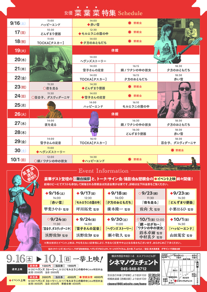9月に横浜の映画館で、女優 菜葉菜 特集 が開催されます。