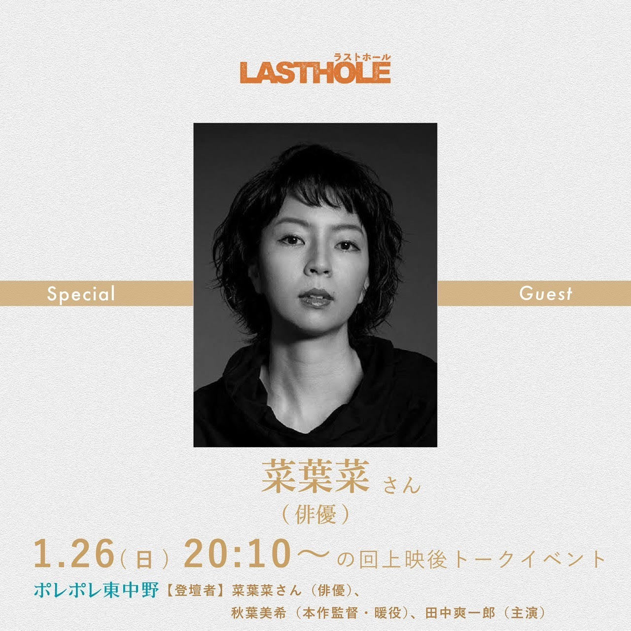 | 菜 葉 菜 | 1月26日(日)ポレポレ中野にて秋葉美希監督「LASTHOLE」のトークイベントがあります。菜葉菜がゲストで参加します。登壇者は秋葉美希監督、田中爽一郎、菜葉菜