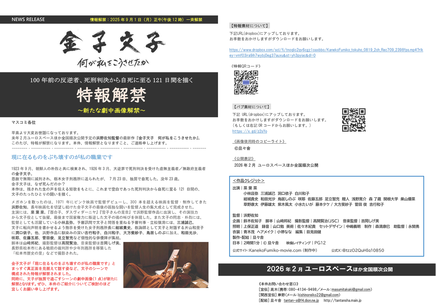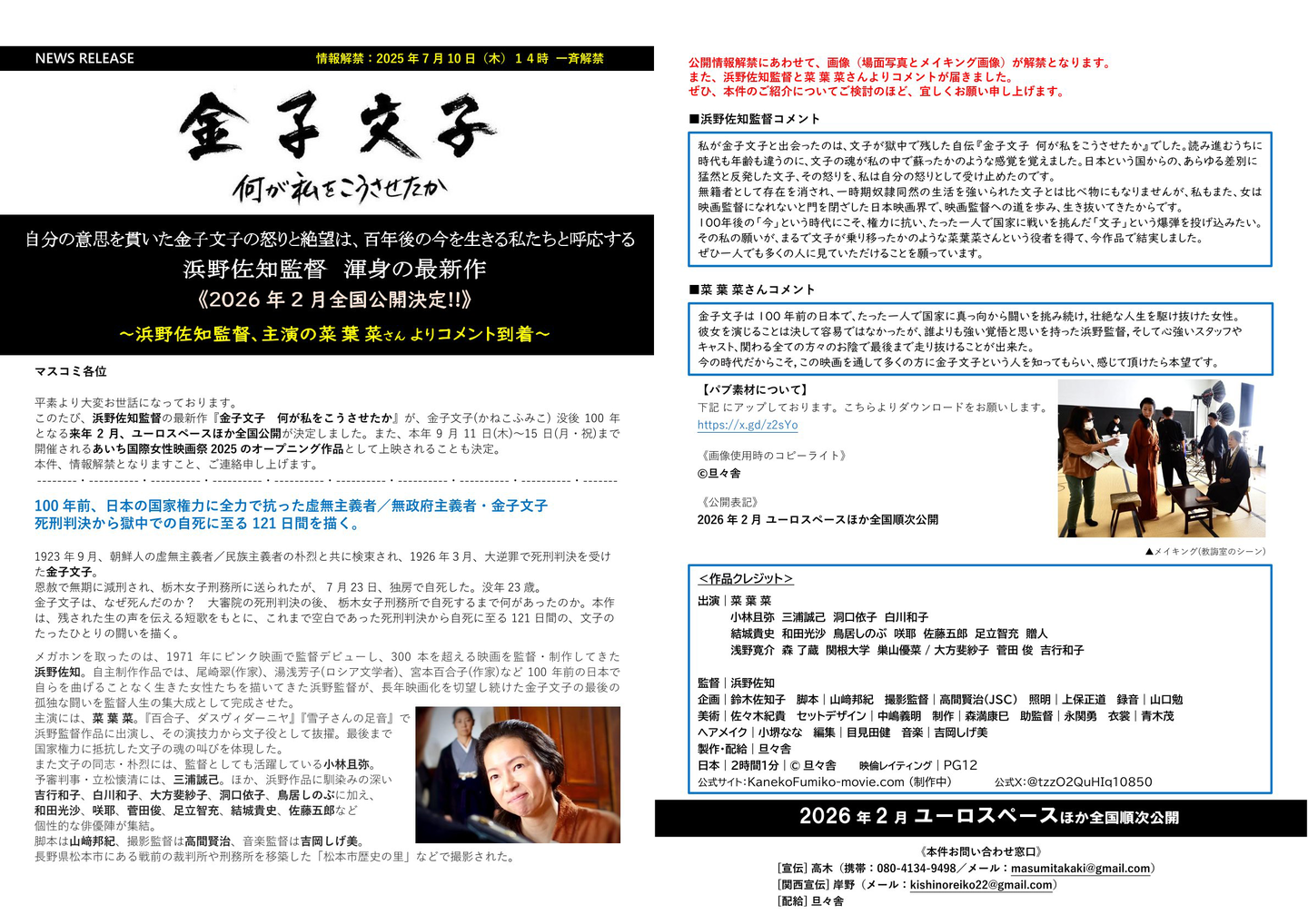 | 菜 葉 菜 | 「菜葉菜が主演する映画「金子文子 何が私をそうさせたか」(監督/浜野佐知)が9月11日に愛知国際映画のオープニングとして国内プレミア上映されることが決定した。