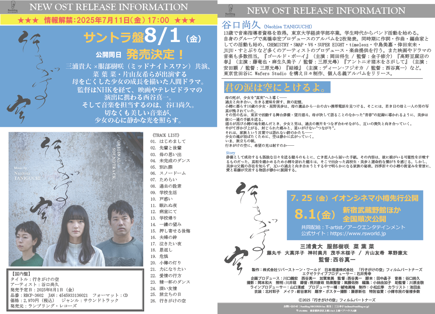 新宿武蔵野館にて8月1日から上映。先行で7月25日からイオンシネマ小樽にて上映開始。 |